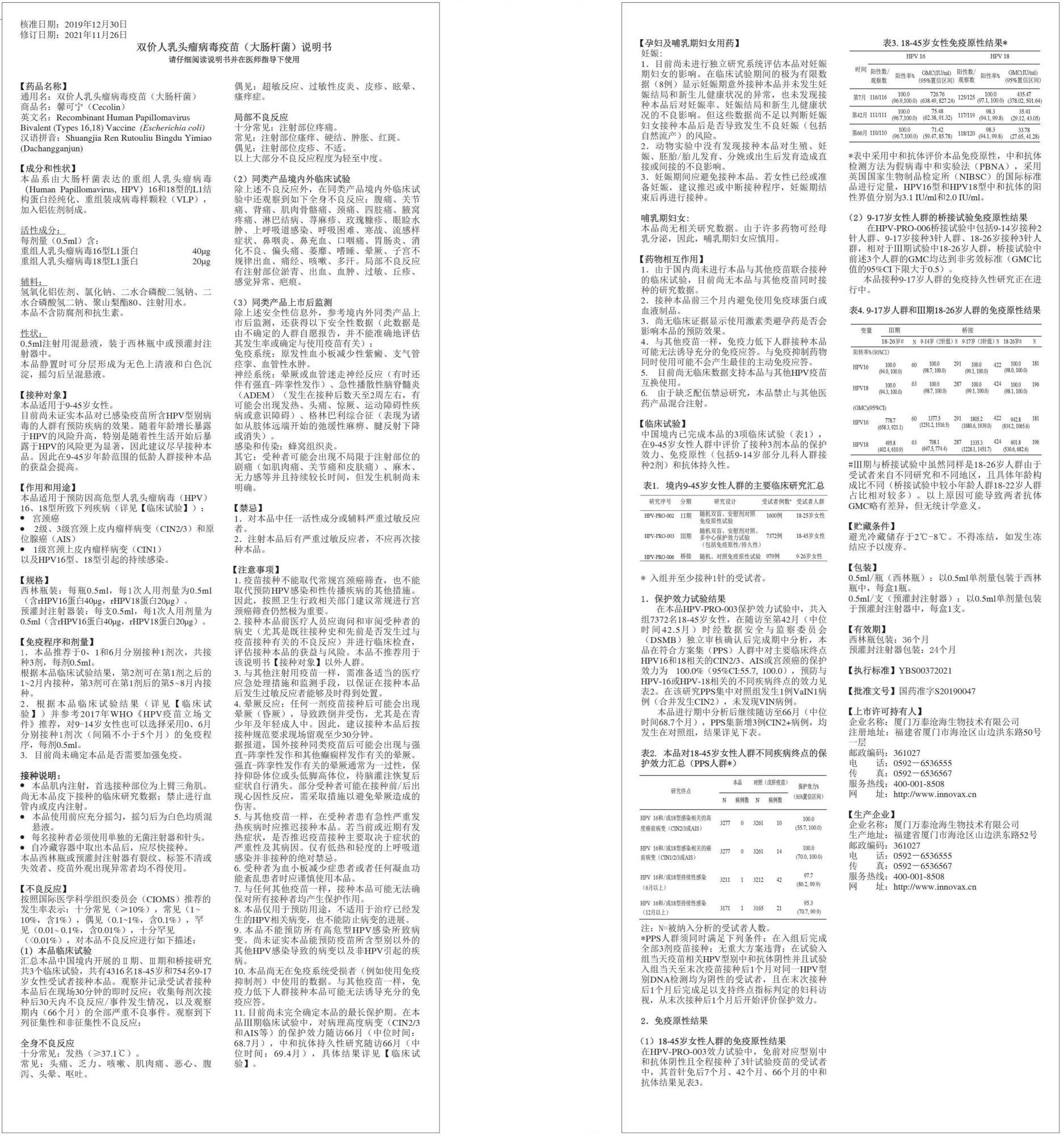 二、宫颈癌疫苗包装、标签、说明书