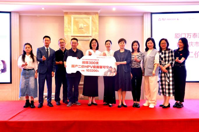 随后,厦门万泰渝贵大区经理徐焰盛向万州区妇女联合会党组书记、主席程禾递交捐赠牌,共捐赠价值10万余元国产二价HPV疫苗,定向用于该区100名20~44岁女性接种,切实为该辖区女性构筑起健康防护屏障。