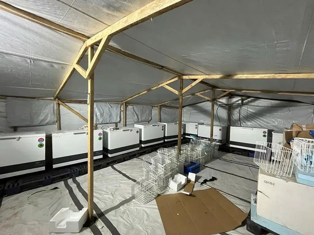 因为营地地处偏远,疫苗的储存和运输就是我们后勤团队首要考虑的问题。无国界医生在本提乌营地的原本有可储存9,000剂量疫苗的主动式温控冷链,但这么多疫苗仍然不足以完成第一轮接种。加上无法将冷藏车停在营地中,以及戊肝疫苗使用玻璃针筒来储存单次注射剂量,而非普通疫苗用的一个小瓶装载多次注射剂量。种种因素都意味着相同剂量的疫苗,戊肝疫苗的储存需要占用更多冷藏库空间。而三轮接种行动所需要的疫苗剂量数目,超出了我们在南苏丹原有的冷链设施容量,因此需要寻找创新的解决方案。