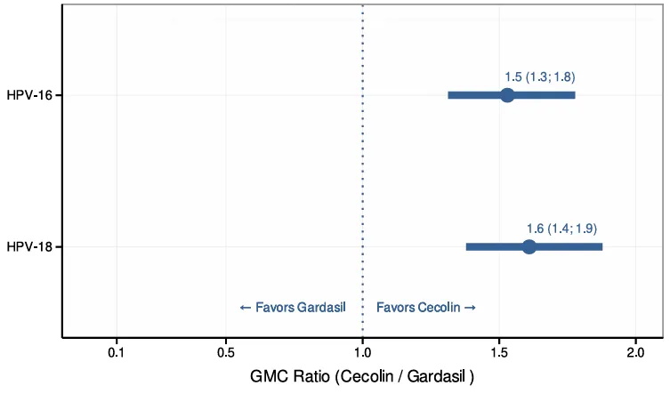 Cecolin/Gardasil单剂程序6个月后的GMC比值