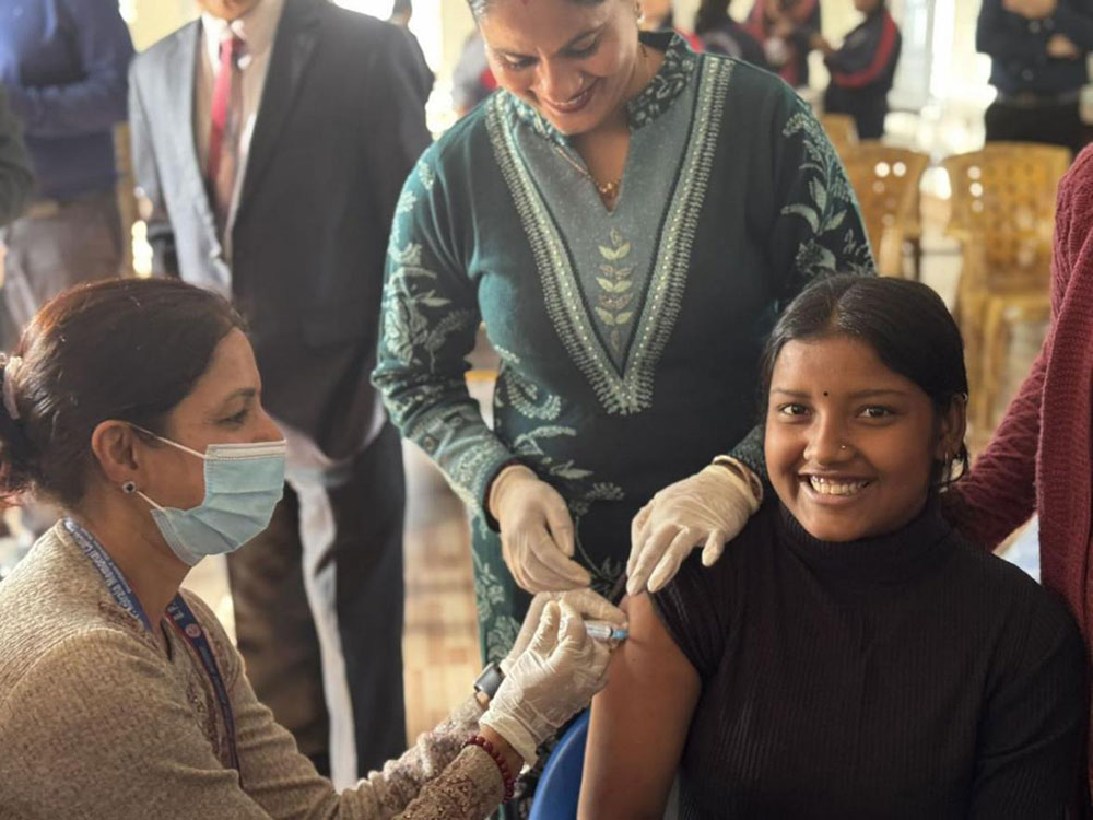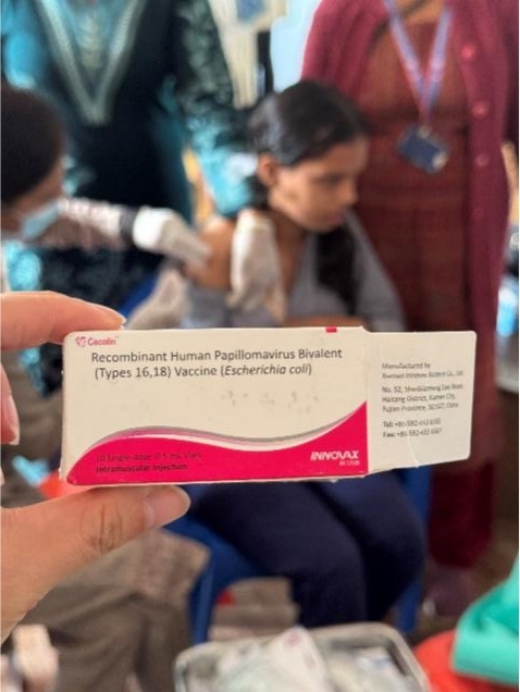 (为尼泊尔当地女孩儿接种中国HPV疫苗)