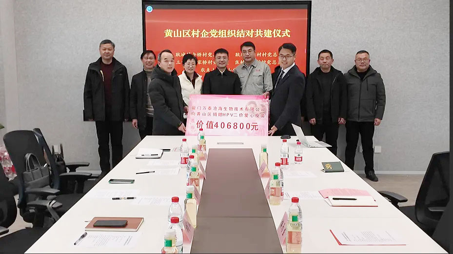 1月6日,黄山区在农夫山泉黄山生产基地举行适龄女生HPV疫苗捐赠仪式,厦门万泰沧海生物技术有限公司向黄山区捐赠了一批二价HPV疫苗,价值406800元,助推当地适龄女生HPV疫苗接种工作。区委常委、组织部部长胡毅,副区长刘先英出席捐赠仪式,农夫山泉黄山饮用水有限公司、厦门万泰沧海生物技术有限公司以及有关区直单位和乡镇负责人等参加。