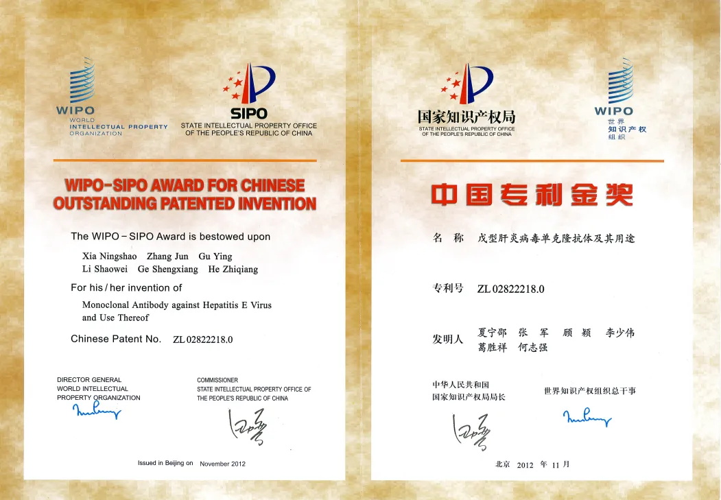 2012年“戊型肝炎病毒单克隆抗体”专利金奖